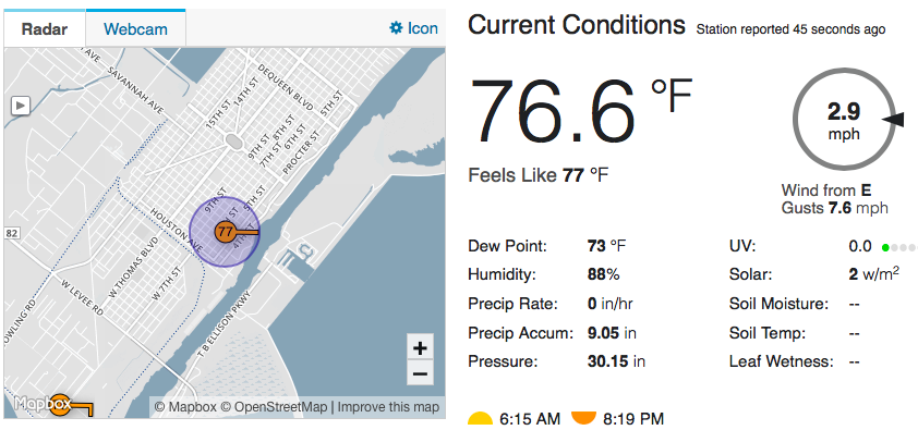 We watched the heavy tropical rains train across the Beaumont-Port Arthurs area for a second day with one weather station in downtown Port Arthur recording 9.05” today for a 2 day total of 14.15”.