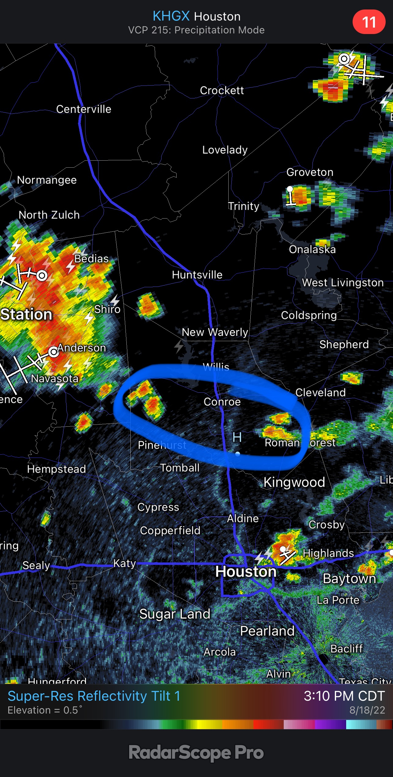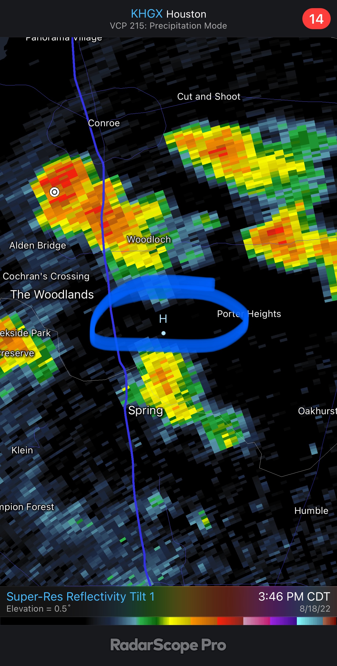 Fierce thunderstorms in all directions but Iowa Colony force field holding for now. We'll see if I catch a break. It's like I'm Jasons2k's twin. Anytime he gets donuted, so do I.