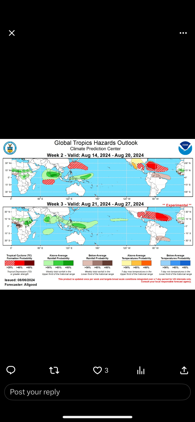 This season so far is following according to plan. Nothing has changed. To say it’s only August 6th and we’ve already had 2 landfalling hurricanes is pretty wild.Pas_Bon wrote: ↑Tue Aug 06, 2024 12:52 pmOk. The adage being true. I get it. But we were supposed to have record numbers of storms forming. I’m done, too, by the way. I’m not ballyhooing a relatively inactive lull we’ve had - Debby and Beryl aside, but where are the storms?Cromagnum wrote: ↑Tue Aug 06, 2024 12:38 pmPas_Bon wrote: ↑Tue Aug 06, 2024 8:58 am