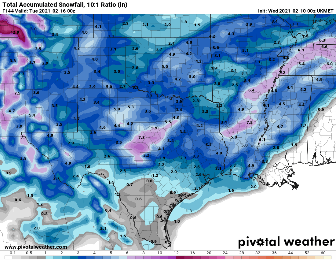 How much snow is being spit out for Houston from the latest suite of 0z products? That can’t all be ice in the GFS map?!?!