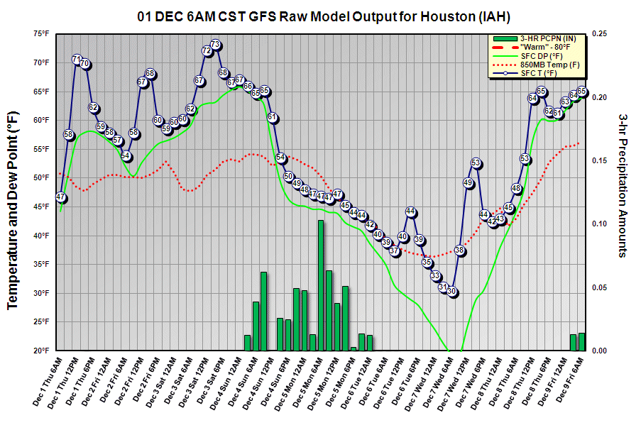 I suspect that, with the warm-up now in progress, many will be taken aback by just how cold it will get on Sunday afternoon. The surge of cold air across the Intermountain Region and Upper Midwest is on the move, however. And despite claims from some sources of the cold blast staying "out west", the this rude introduction to "real winter" will take a bit out of Texas by early next week. If the various schemes verify, sleet could make a brief appearance in the Houston northern suburbs on Monday. And cities such as Dallas and Abilene could have enough mixed precipitation to create driving and power line issues.