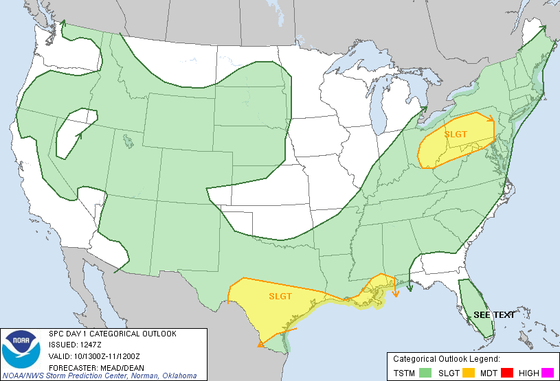 ...THERE IS A SLGT RISK OF SVR TSTMS FROM PARTS OF CNTRL AND SRN TX