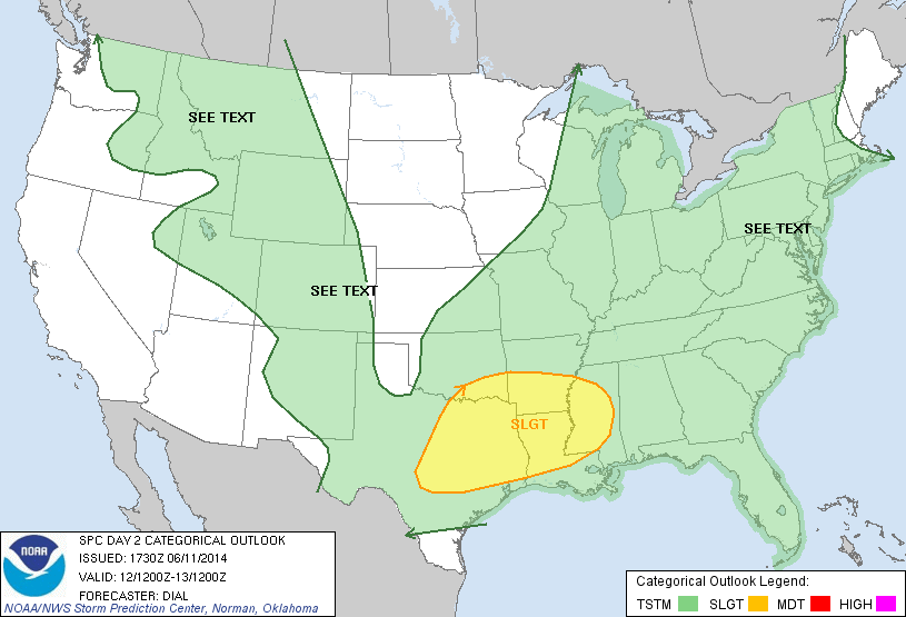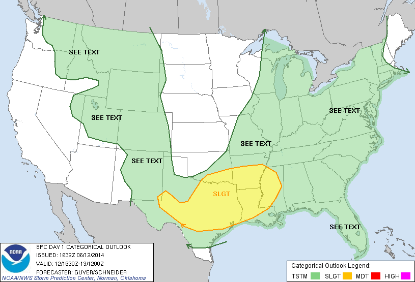 ...THERE IS A SLGT RISK OF SVR TSTMS OVER A PORTION OF THE SRN