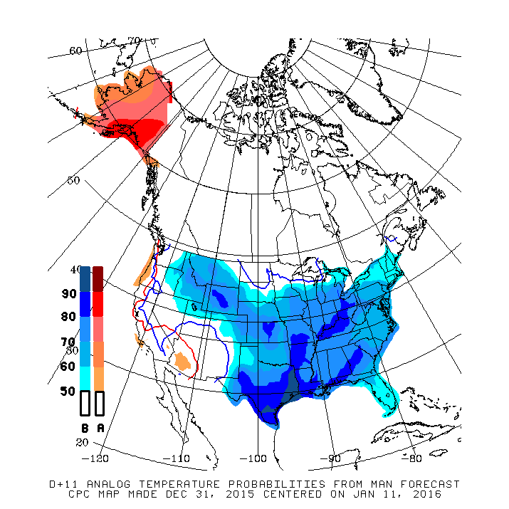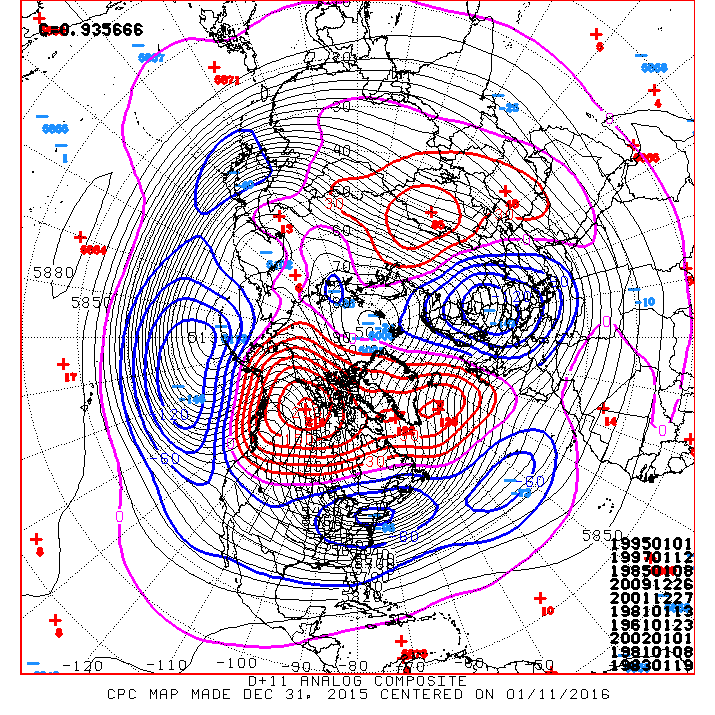 The afternoon Climate Prediction Center Day 11+ Analogs continue to advertise a cold and somewhat unsettled pattern typical of an El Nino year across our Region. Happy New Year KHOU Weather Forum Community!