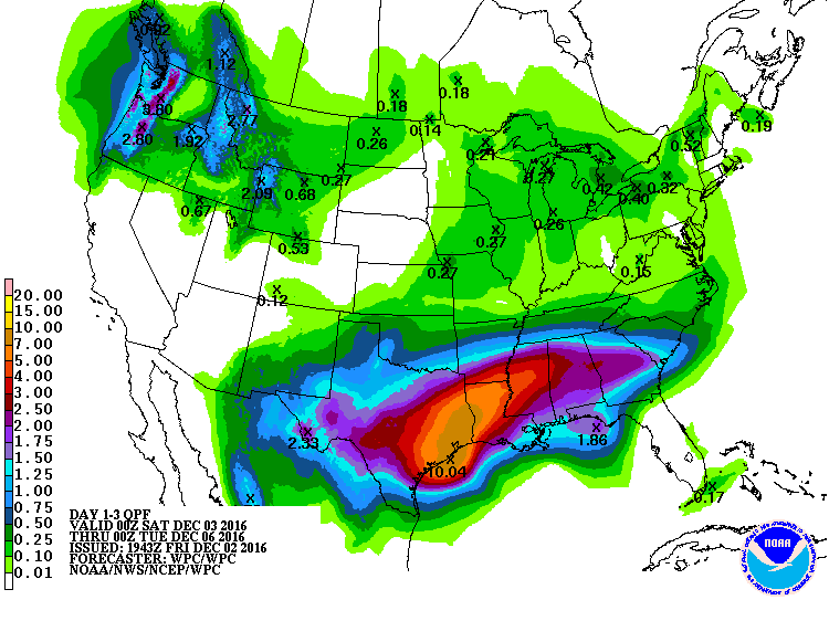 The afternoon updated quantitative precipitation forecast for the next 3 days has increased. Careful driving around this weekend.