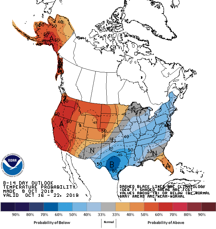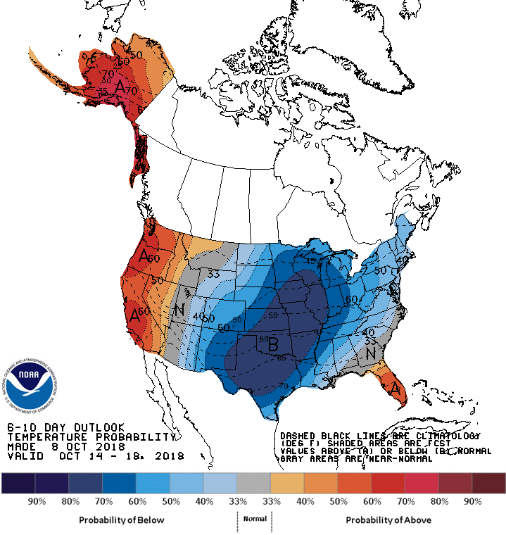 The afternoon Updated Climate Prediction Center temperature Outlook that extends into the weekend after next suggests below normal temperatures are possible across our Region.