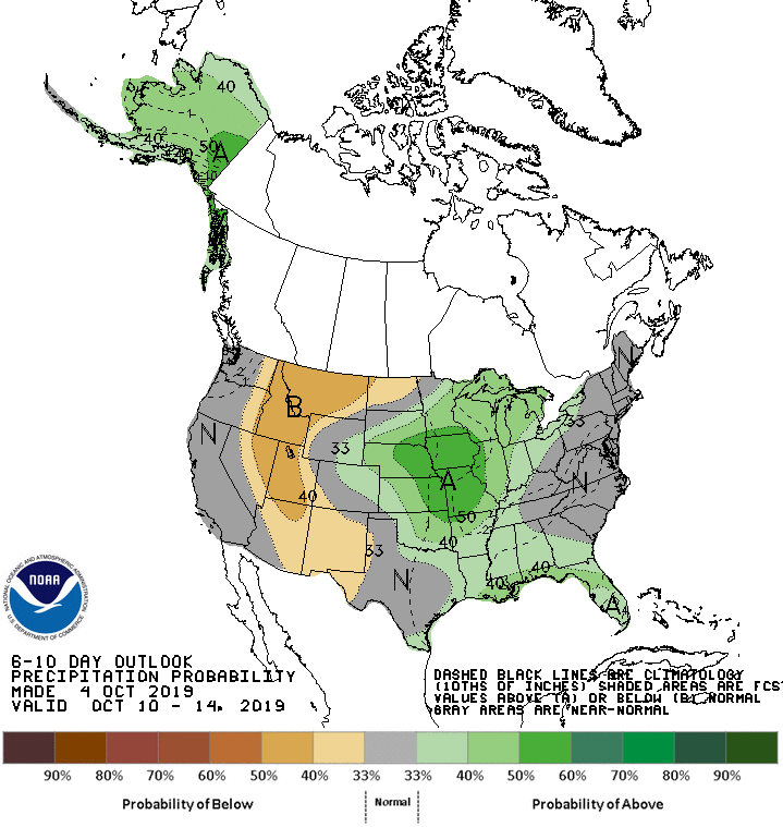 NOAA looks sensible. 40% chance of rain Sunday night. Not much after that. Highs around 80°F, the a late week warm up before next weekend's stronger front.