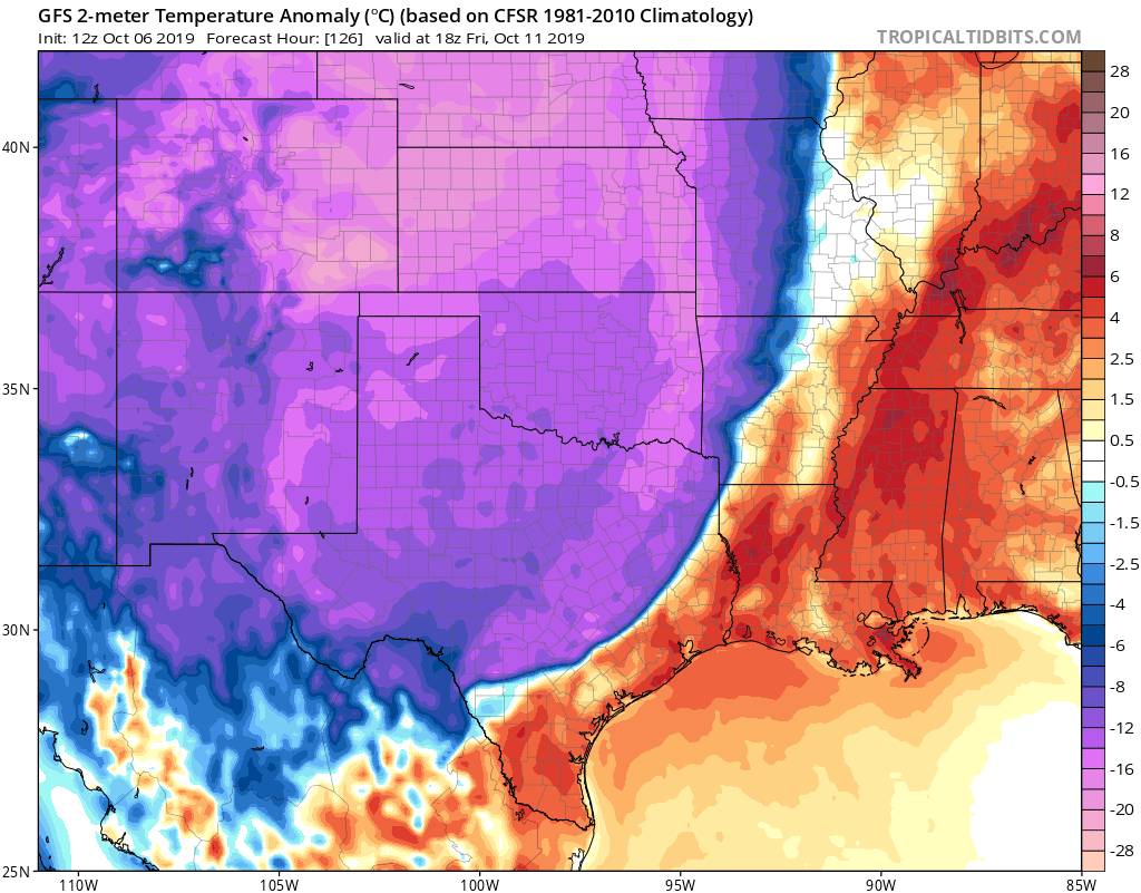 The low pressures that follow these fronts are typically too far north of us to give us anything.jasons2k wrote: ↑Mon Oct 07, 2019 12:24 pmYeah it came through here earlier this am. It’s overcast now with a nice northerly breeze. Glad the fall temps are finally here.djmike wrote: ↑Mon Oct 07, 2019 9:54 am Fronts knocking on our back door! Anyone feel it yet? Patiently waiting in Bmt. Had anyone noticed that fronts these last couple of years never have a line of storms with them anymore in our region? They all come through dry now. Not that I need anymore rain in Beaumont, but just an observation.