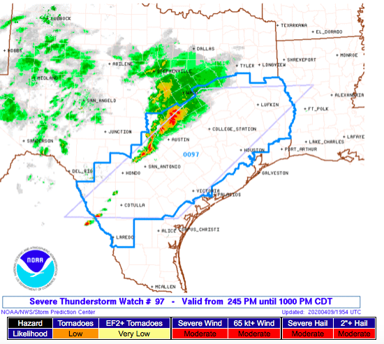 A Severe Thunderstorm Watch has been issued STX, S Central TX, and most of SE TX except the coastal counties until 10:00PM. Remain weather aware this evening and tonight.
