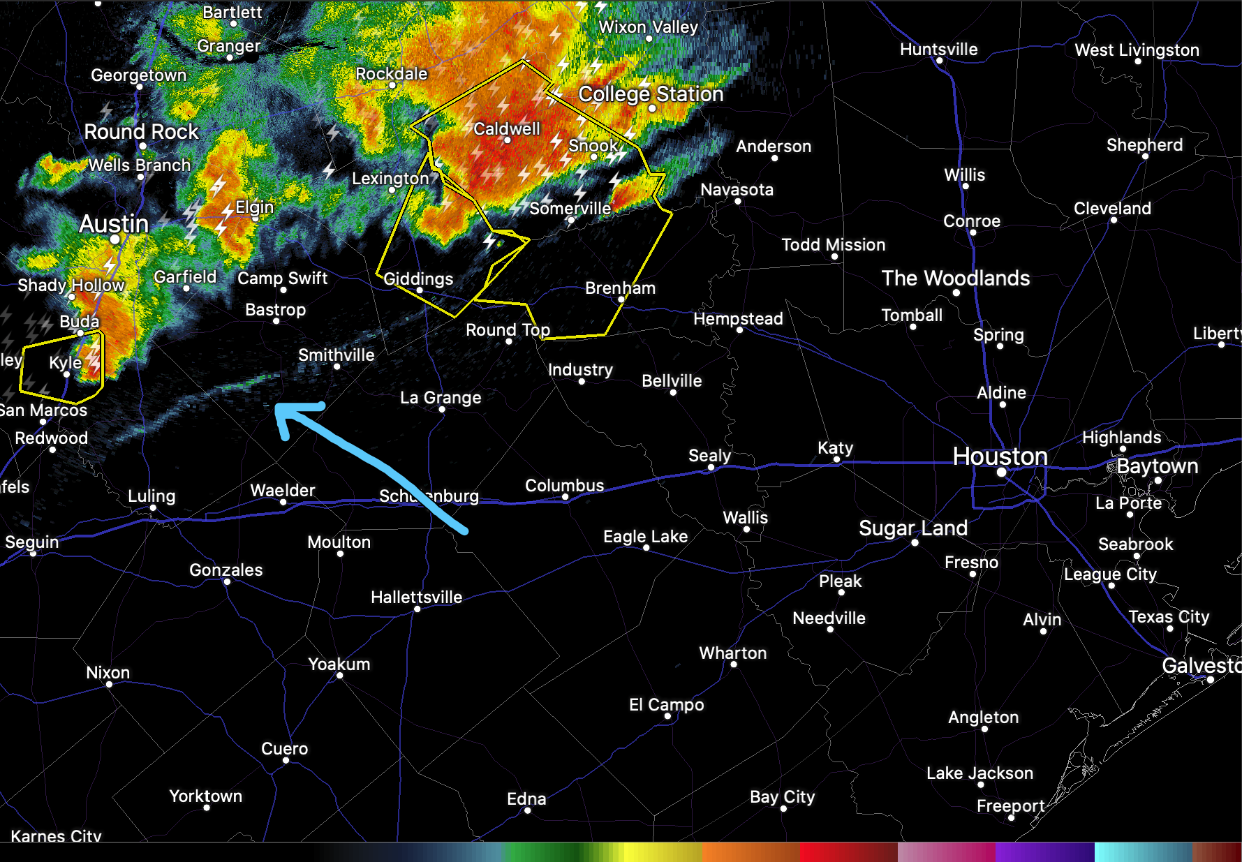 Those cells near Brenham look nasty, and right-turners as well.