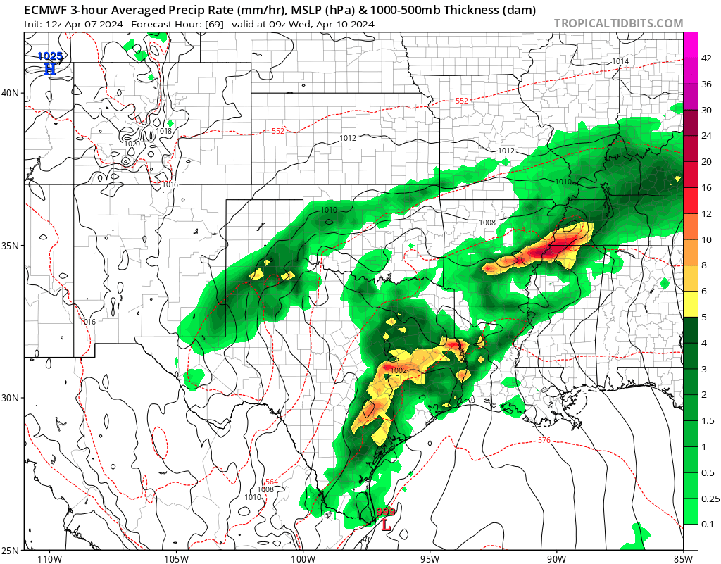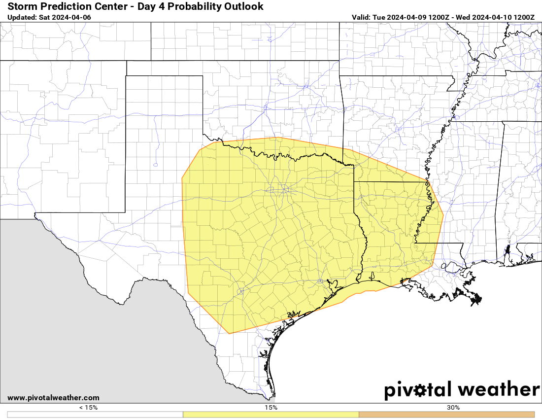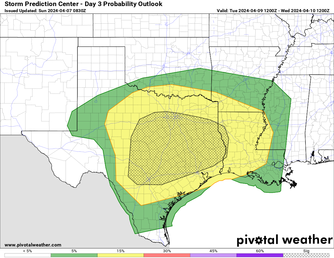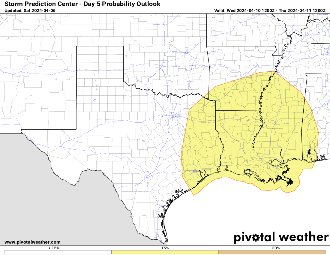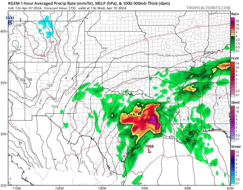 Yeah, I know. But even a week ago they had the darker greens over S TX, which isn’t going to verify.don wrote: ↑Sun Apr 07, 2024 4:49 pmThe CPC map is referring to next weekend and beyond,not this weeks storm system.( it starts on April 13th)