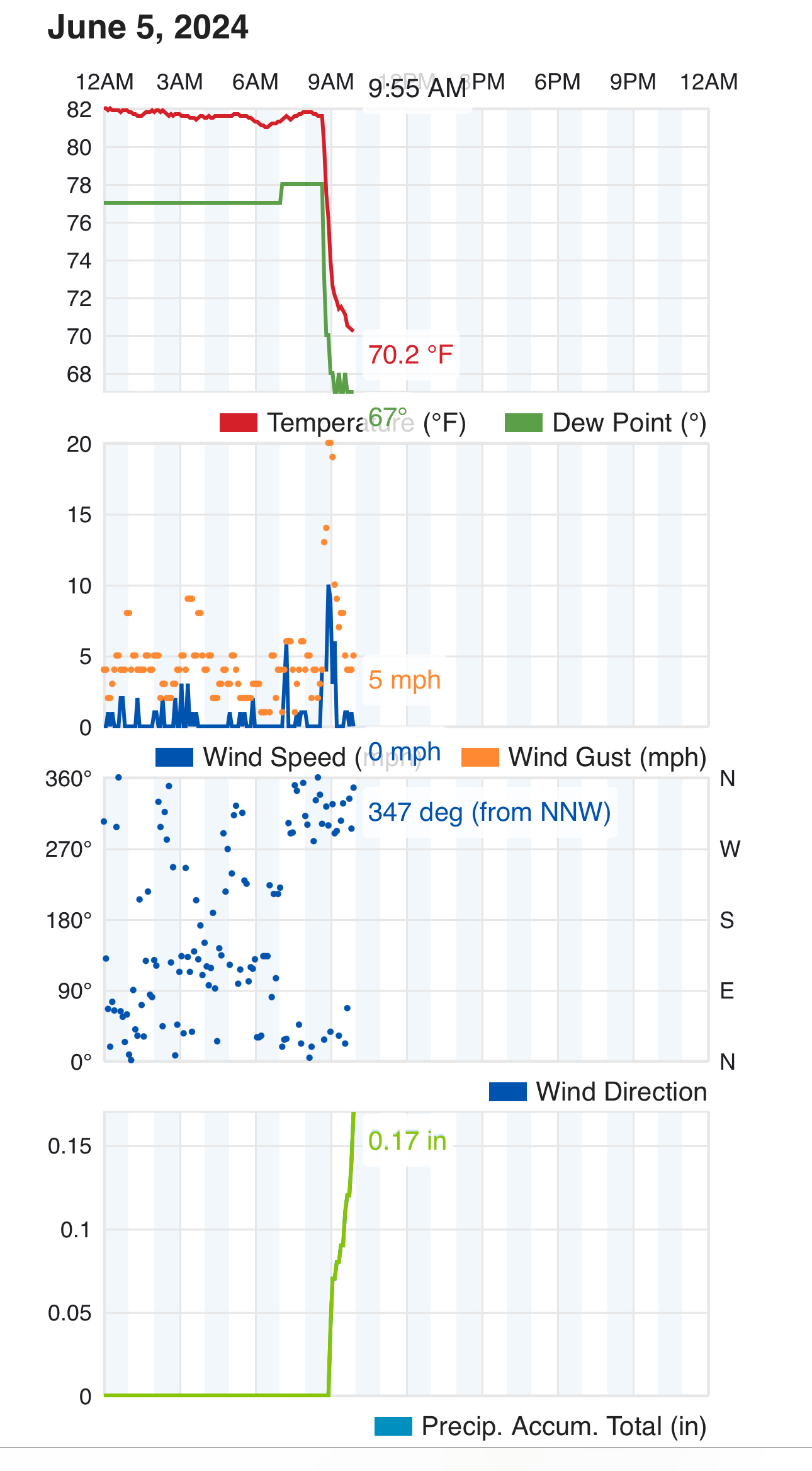 advisory threshold), relatively light winds and mostly clear
