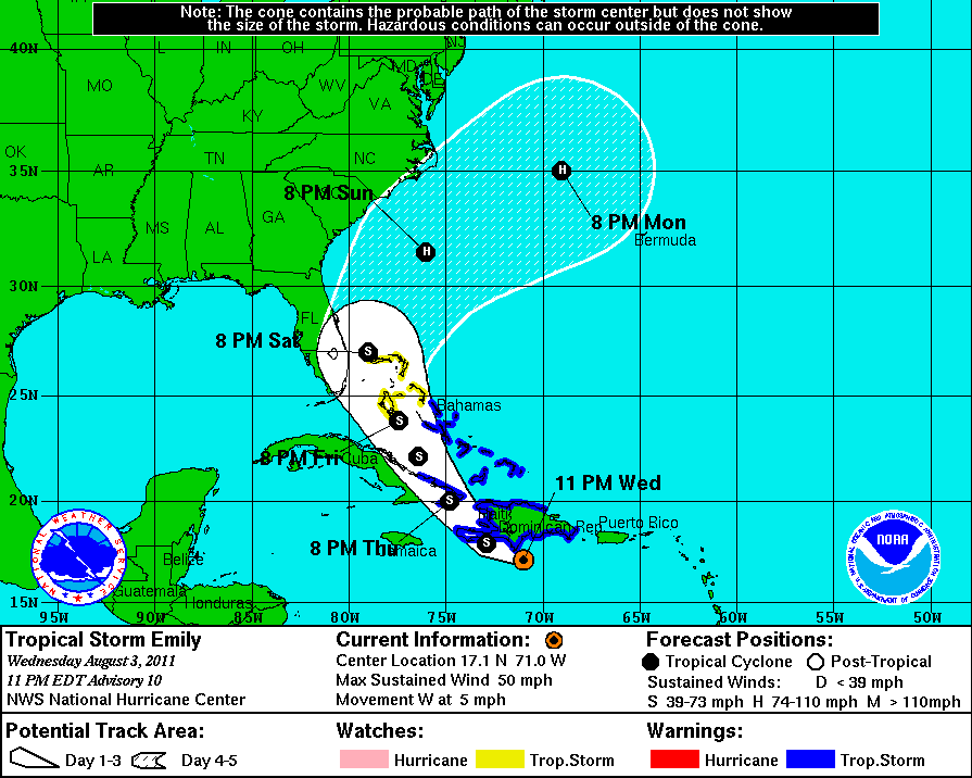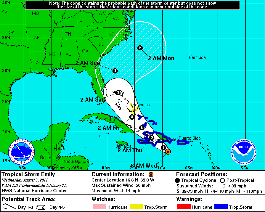 AT 800 AM EDT...1200 UTC...THE CENTER OF TROPICAL STORM EMILY WAS
