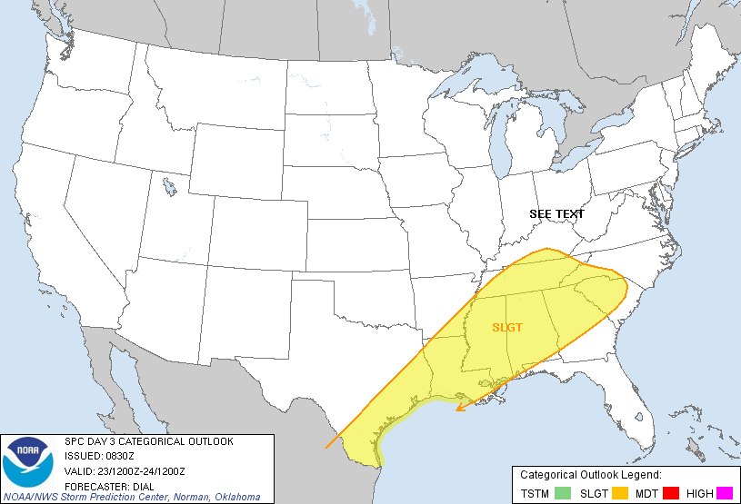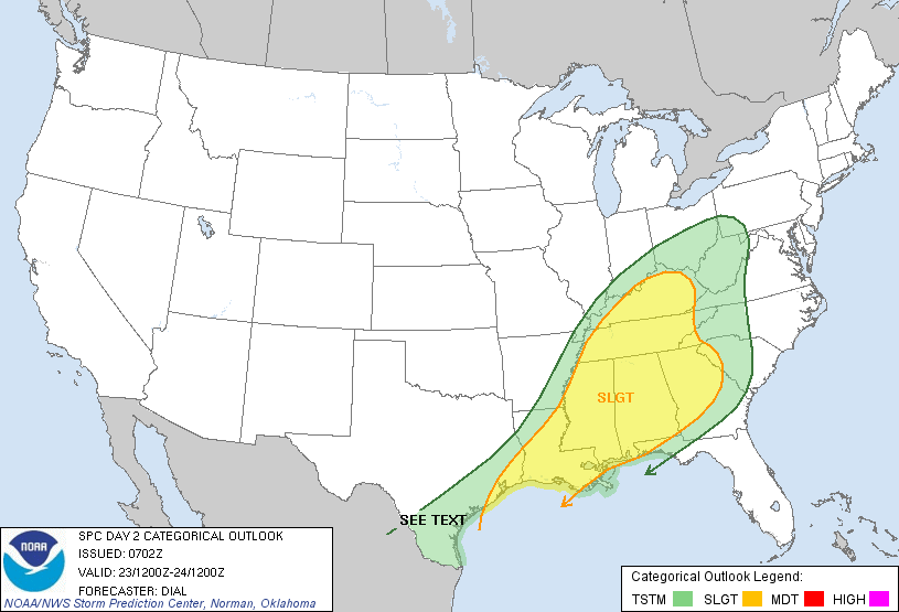 SPC Day 2 (Thursday) Severe Weather Outlook: