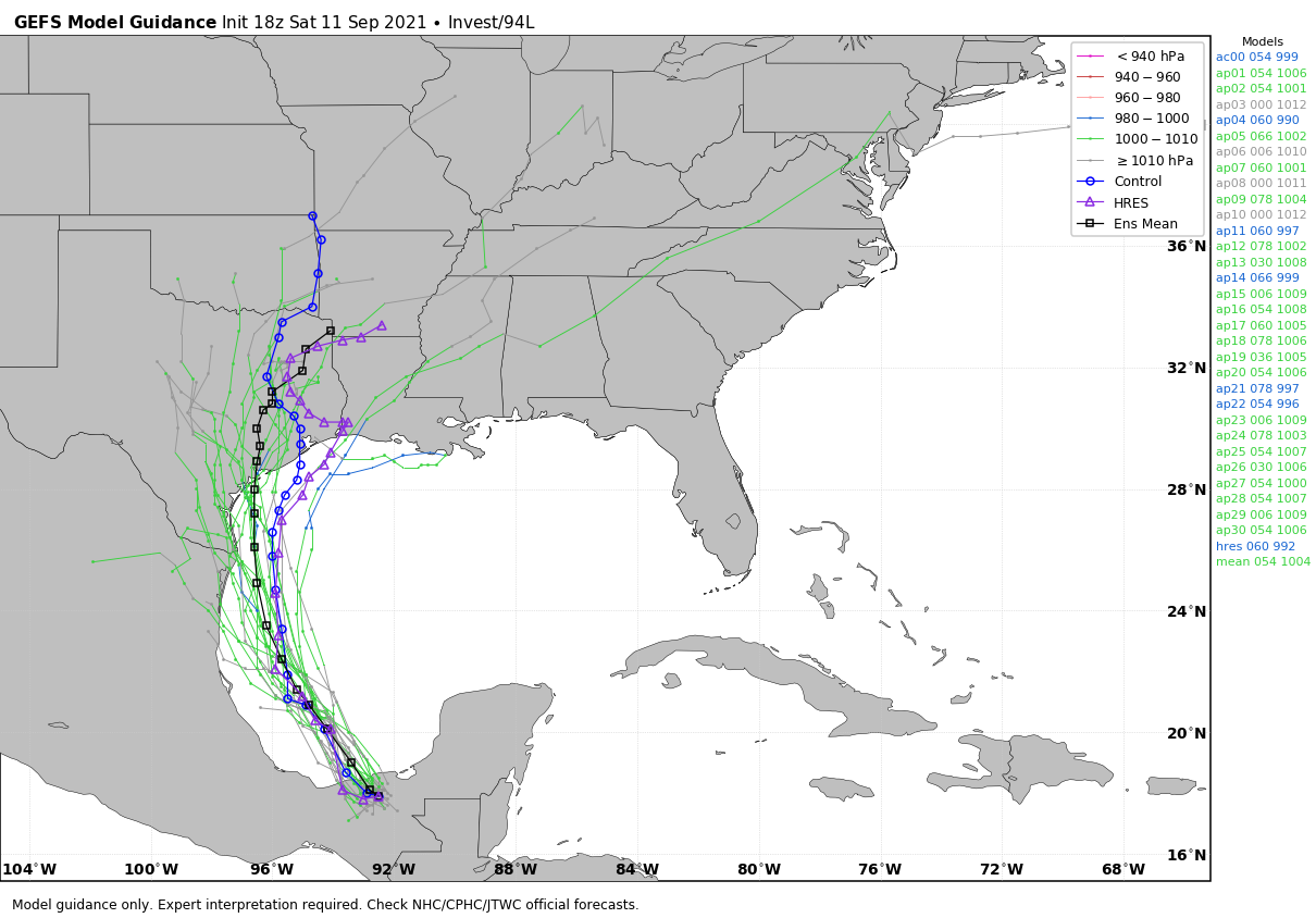 Gotcha. But, enough uncertainty remains to not discount it.Stratton20 wrote: ↑Sat Sep 11, 2021 5:41 pm weatherguy425 im not, but just looking at the ensemble data, and the hurricane models on tropical tidbits, id say roughly 90% of guidance is favoring this moving into texas before making a NE turn inland , the GFS and Euro are still not agreeing yet, but i suspect the GFS will eventually cave in to the Euro