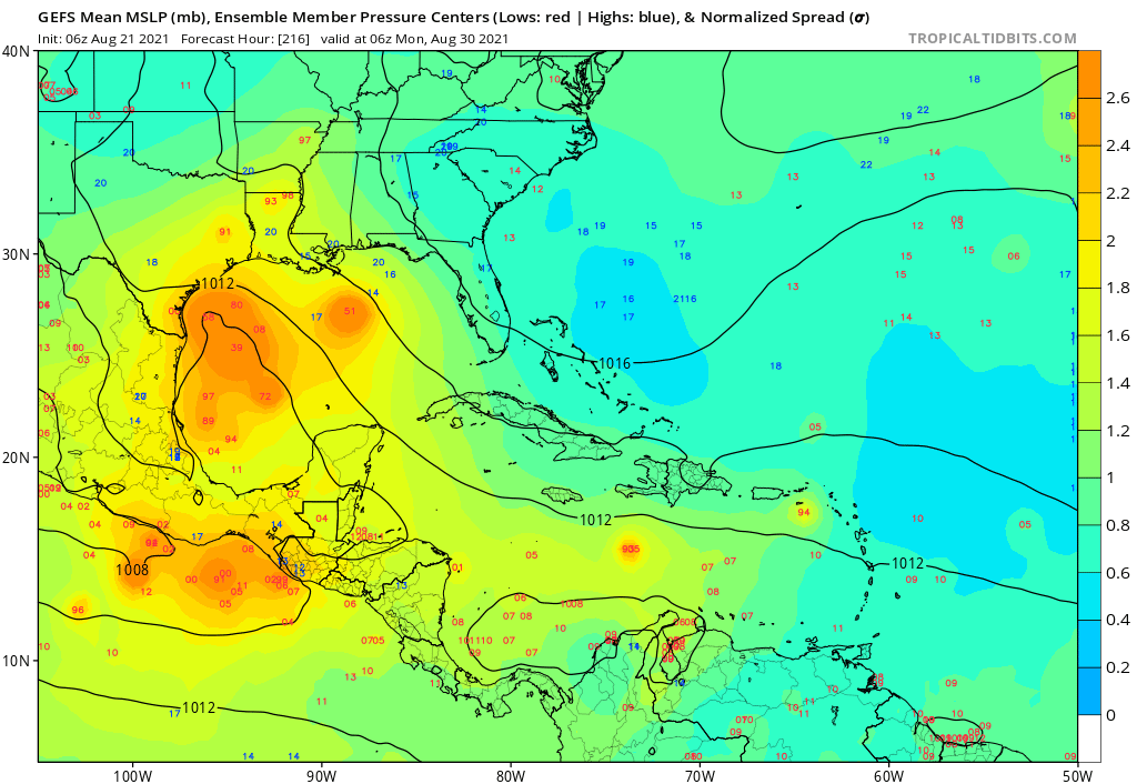 The 6z GEFS just made things a lot more interesting. I wonder why the operational is so different? It has it going towards Tampico. I feel like till the operationals show something this won’t really get much attention.