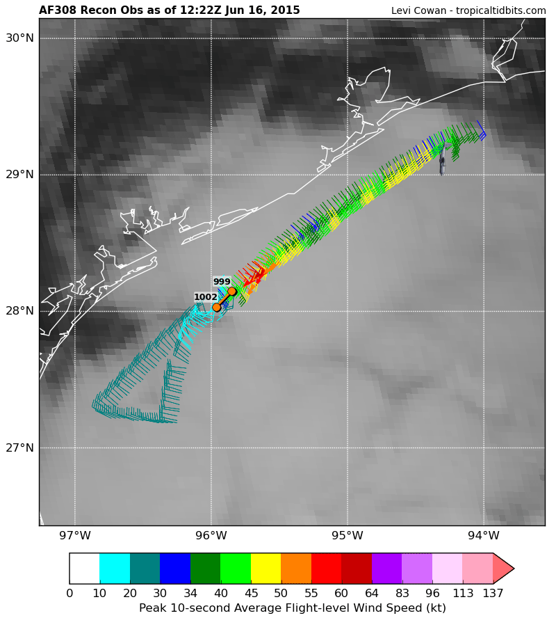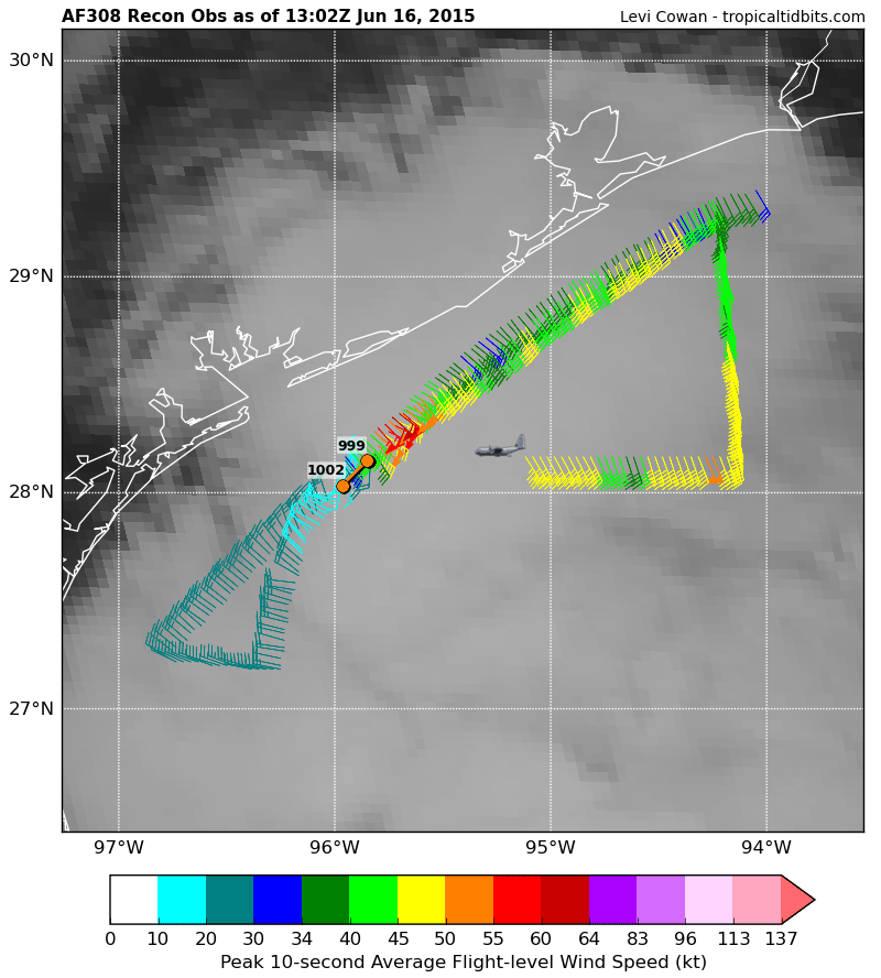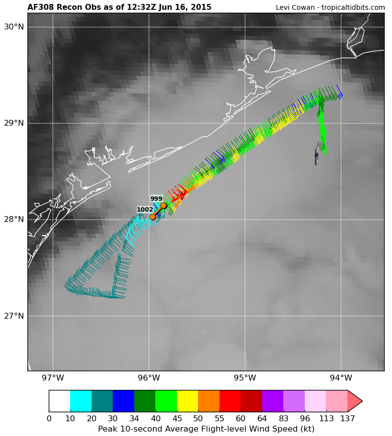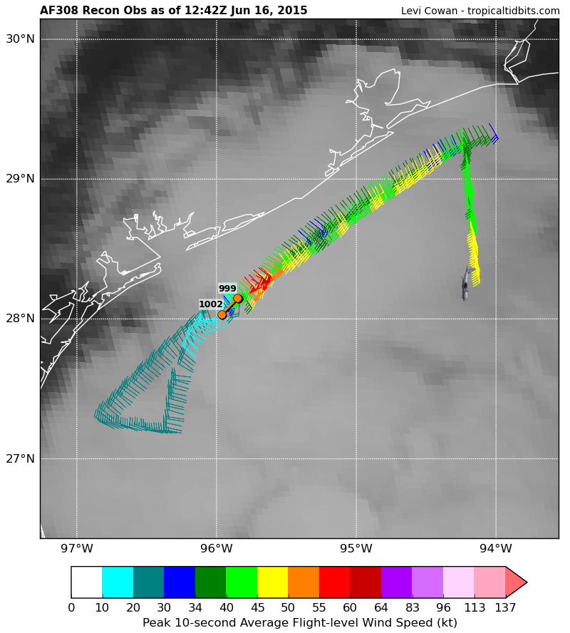 Nice wobble to the SW for Bill. I recall Carla did this as well back in 1961 near Matagorda Bay.