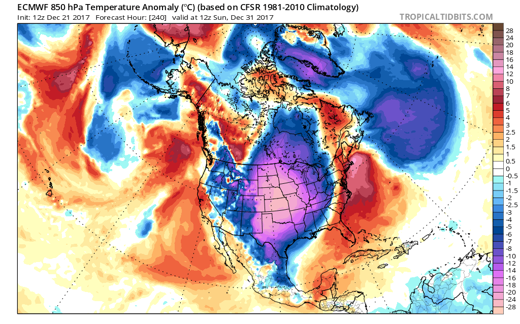 Cold New Years Eve? The ECMWF roll of the dice today say maybe with a 1054 High over Wyoming. Any takers?