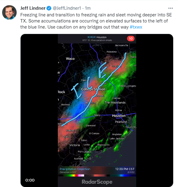 We still have two more rounds of precipitation to get through, one this evening and one Friday morning, and both could potentially bring light accumulations of ice to local bridges and overpasses. The overall risk of icing in Houston is low, but we do expect some icy patches to pop up overnight. It would be best to avoid traveling over any bridges or overpasses if you can avoid doing so tonight, especially where the Winter Storm Warning is in effect in Brazos, Grimes, and Washington Counties.