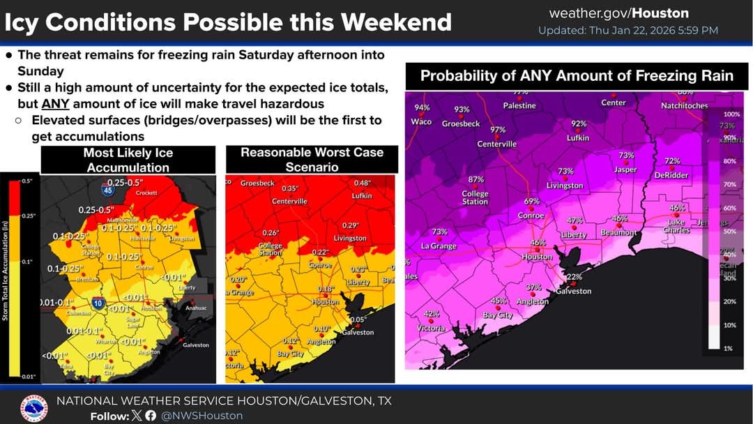 I think freezing rain is likely. Forecast models do not handle wintry weather in Southeast Texas.