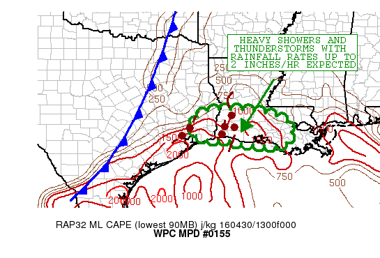 FLOODING THREAT HIGHLIGHTED IN WPC MPD 154...ISOLATED DAMAGING WINDS