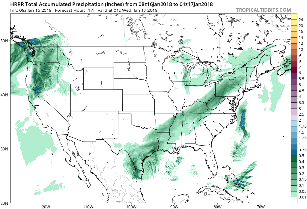 Good morning. 39F and falling quickly across NW Harris County with winds gusting to 25 MPH and light rain. A quick inspection of the various features indicate that shortwave over Mexico I mentioned yesterday has progressed E toward the Ranchlands of S Central Texas and is approaching the San Antonio/Pleasanton area generally moving E to NE behind the Arctic Boundary near the Coast. Lift is increasing across S Central Texas associated with that feature as well as frotogenesis or lift generating light precipitation of a wintry mix across Austin to College Station. The latest HRRR as well as the typically drier ECMWF suggest a quarter inch of precipitation is possible with some isolated higher amounts nearing .40 possible. Most of that heavier precipitation is freezing rain/sleet with some snow. Conditions should begin to deteriorate after sunrise and continue to deteriorate throughout the morning into the afternoon as temperatures fall into the mid to upper 20's across most of SE Texas except right along the Coast where it may take until the afternoon to transition to a wintry mix.