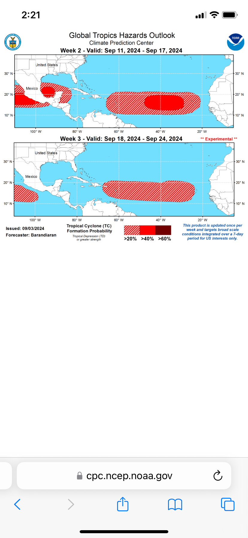 Yeah, but I think the SE will see most of that action. The precipitation outlooks on there favor that area more than us.Stratton20 wrote: ↑Tue Sep 03, 2024 5:42 pm Cpv17 but yet the CPC updated this today on their site, clearly they are seeing something that we arent lol