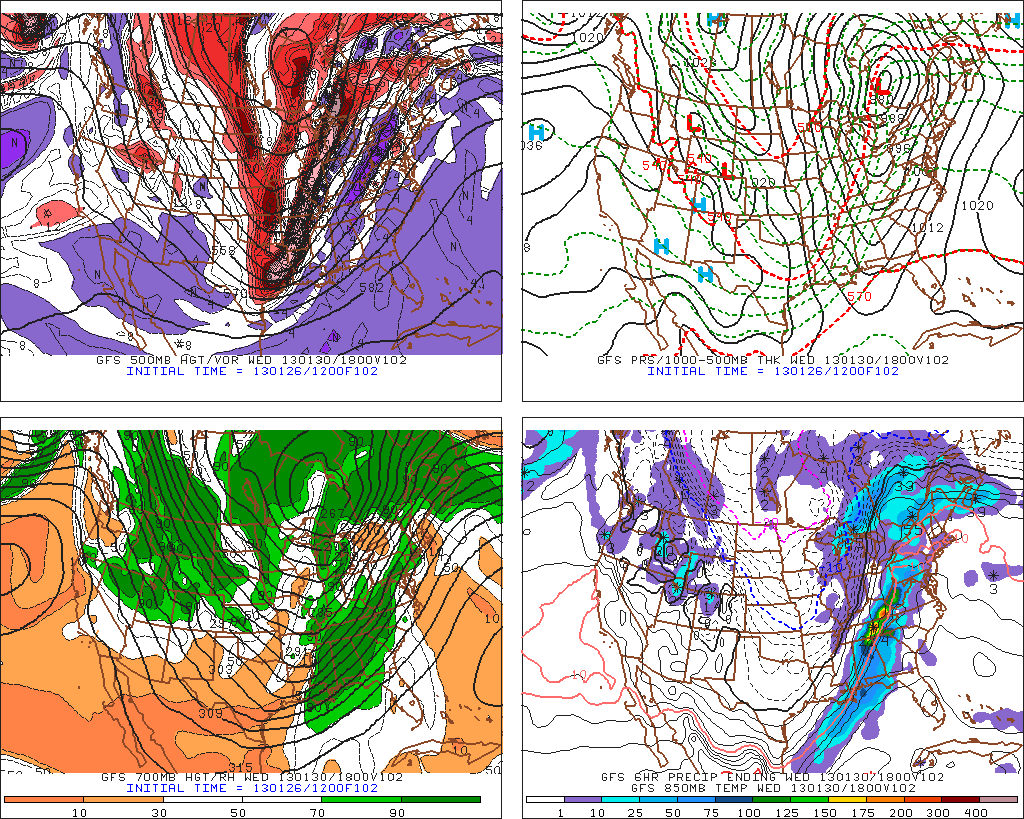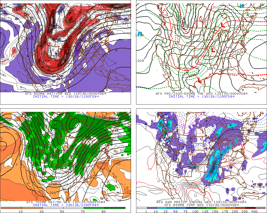 Across the Plains, the cut off low that has plagued the Desert SW late last week bringing Valley rains and very wet higher elevation snow fall is ejecting ENE and bringing much warmer temps across that Region setting the stage for the events discussed for the late January time frame.