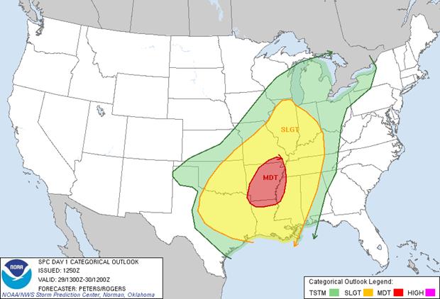 ...THERE IS A MDT RISK OF SVR TSTMS FROM THE ARKLATEX TO THE LOWER