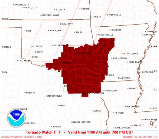 Widespread severe weather outbreak likely today over the MS valley into east-central TX.