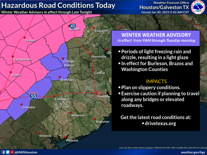 don wrote: Mon Jan 30, 2023 8:19 am Advisory issued for the Brazos Valley.