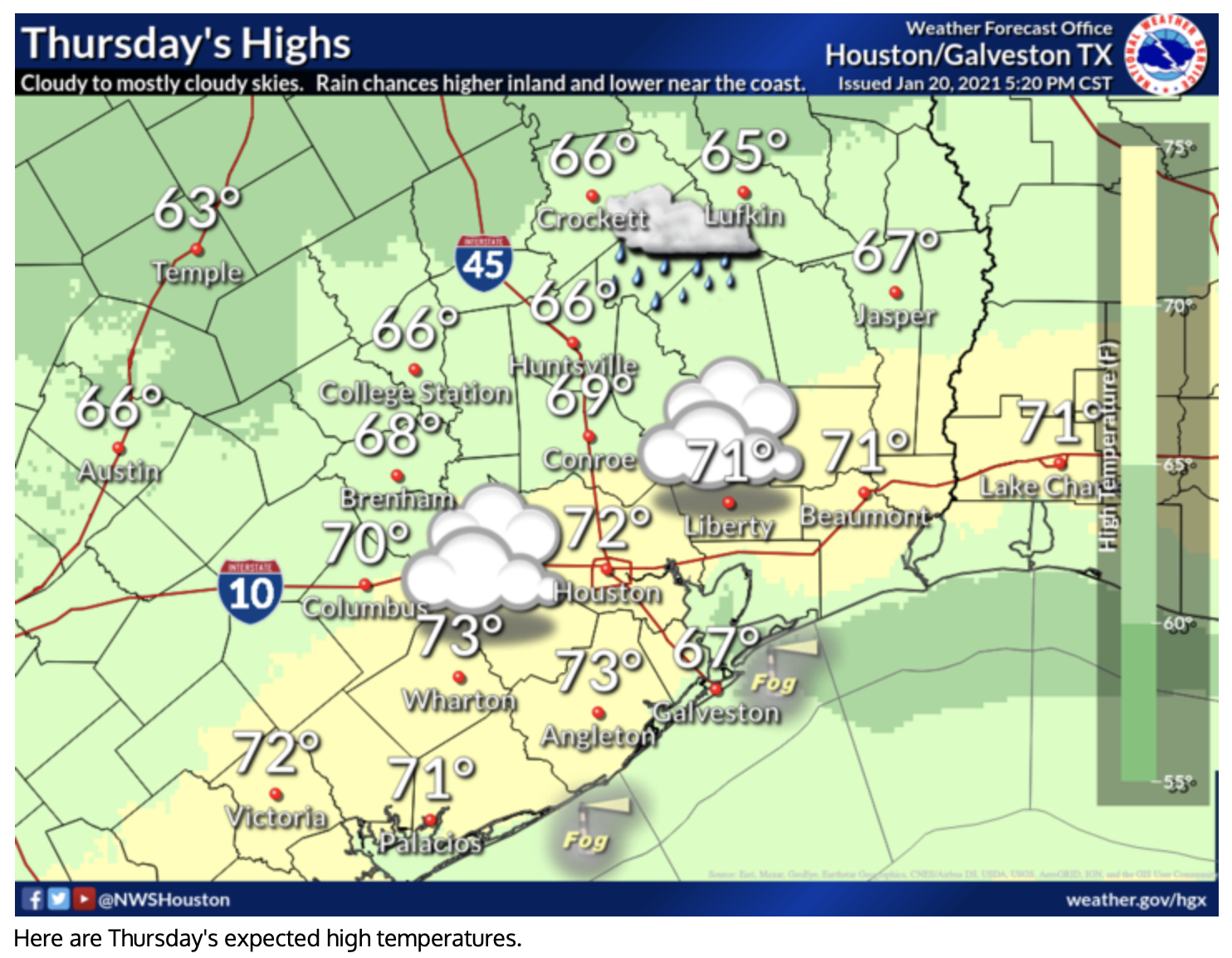 Houston (IAH) 73 54 66 59 73 / 20 10 10 10 30