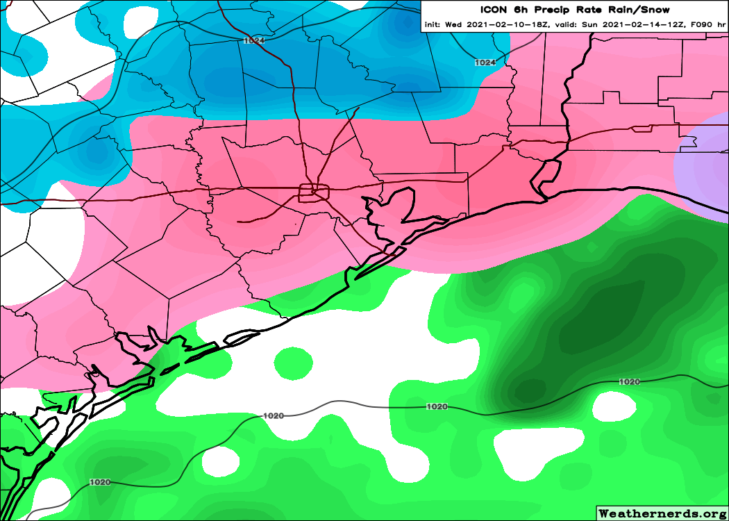 Yep i mentioned earlier that some of the short range models are trending back towards showing a icing event Saturday night into Valentines day.Earlier runs of the GFS had a pretty potent storm this weekend,but then backed off on it.But if we can get enough lift with the front on Saturday, we could get some wet bulbing bringing us down to freezing.Something to watch for sure.In fact the ICON has temps below freezing north of the 59 corridor on Saturday with precip.MontgomeryCoWx wrote: ↑Wed Feb 10, 2021 7:15 pm I'm not sure how many people understand how borderline Saturday could be.....