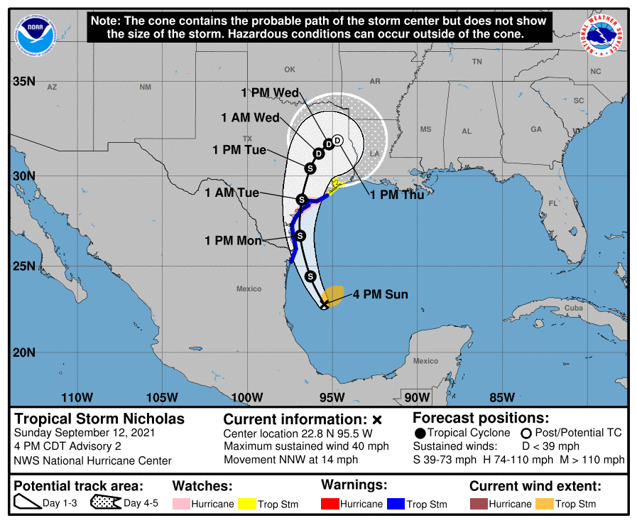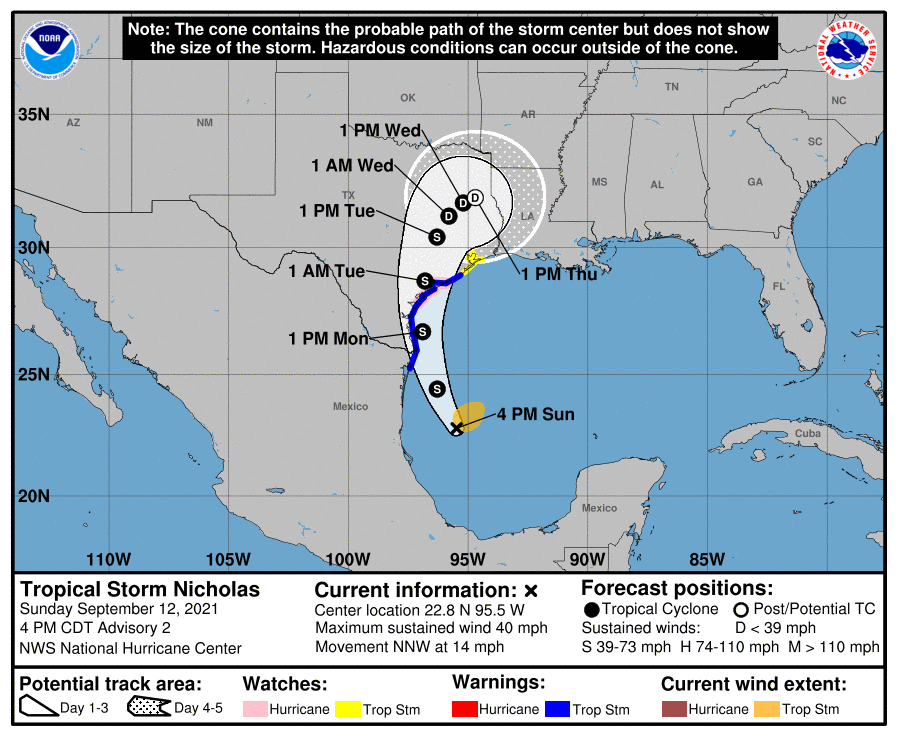 3. Nicholas is forecast to approach the middle Texas coast as a