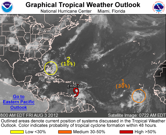 Ernesto has some deep warm water in the Caribbean. Could intensify into a major hurricane.