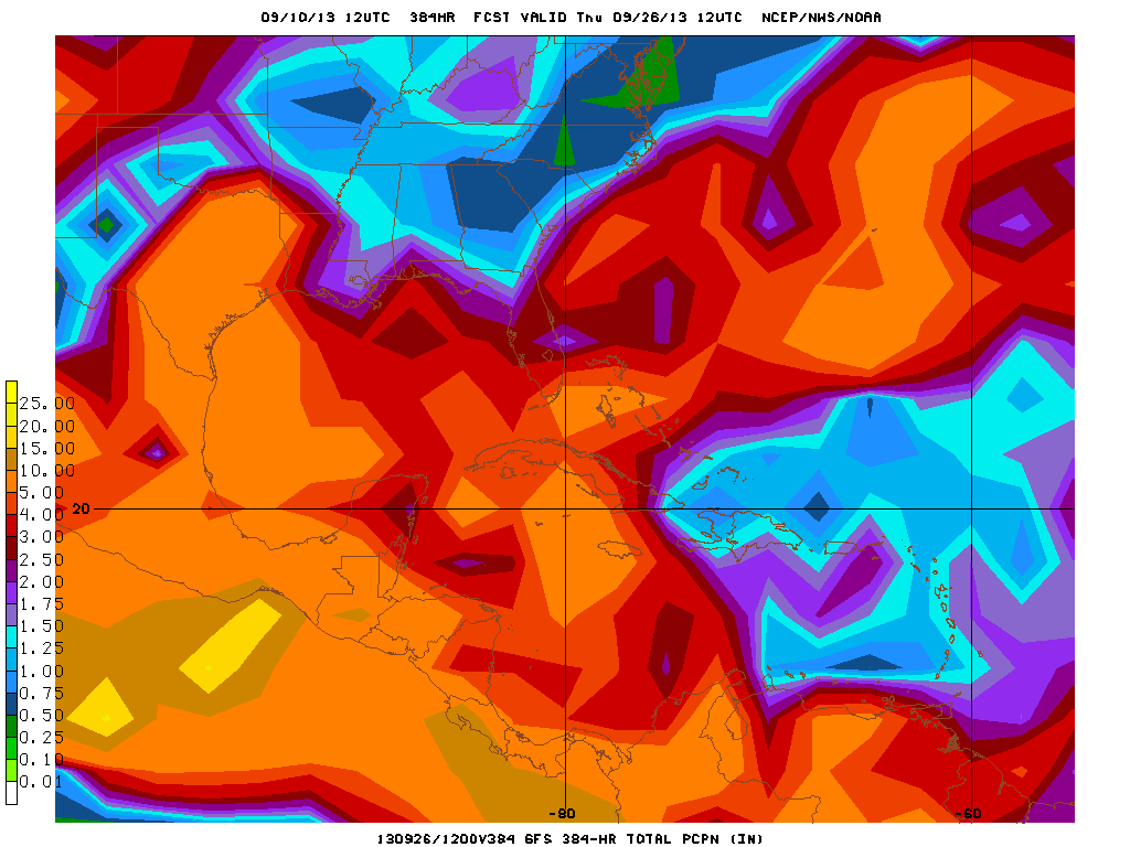 Invest 93L looking better organized and a rather large system that will likely become TS Ingrid in the GOM this weekend. Models are showing shift further N will a possible landfall between Tampico, MX and Brownsville, TX. A few models are further N toward the Corpus Christi area. Still many days out and not even in the GOM yet however very well needed tropical rains may become reality for a large part of TX early next week. Interesting days ahead.