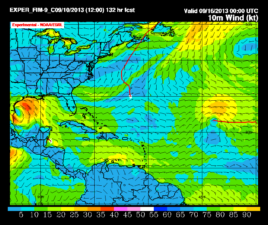 The Experimental 12Z FIM 9 Model 10 meter wind fields suggest a large sprawling circulation near the Lower Texas Coast on Monday.
