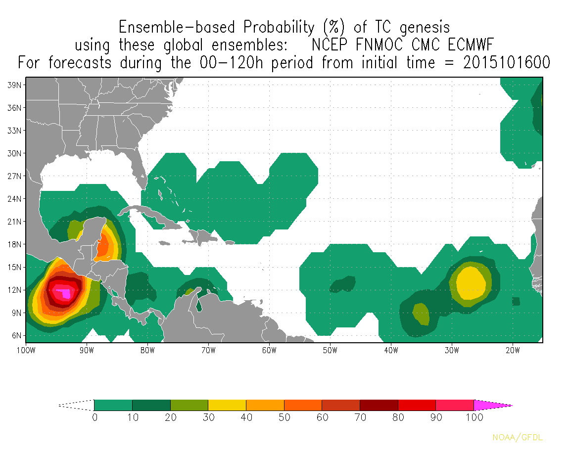 While the weekend will bring a shot of cooler and drier air into the Region, the overnight MJO and Tropical Cyclone Genesis Probabilities are 'sniffing' out the tropical convection across the NW Caribbean extending into the Gulf of Tehuantepec. The National Hurricane Center is monitoring an area of disturbed weather S and SE of the Gulf of Tehuantepec moving toward the West Coast of Mexico giving it a 50% chance for development by day 5. Enjoy the weekend and we will continue to monitor the potential weather maker across our Region for next week. It's been a while since we have really had anything of note to talk about, but that may be changing...