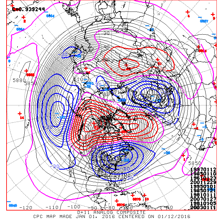 The afternoon updated Day11+ Analogs keep the cold and unsettled pattern going well into mid January.