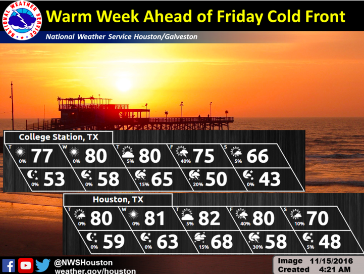 College Station (CLL) 80 65 73 44 62 / 0 10 50 0 0