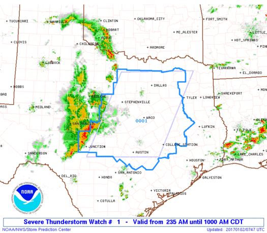 First Severe Thunderstorm Watch of the New Year issued for portions of North, Central and SE Texas until 10:00AM