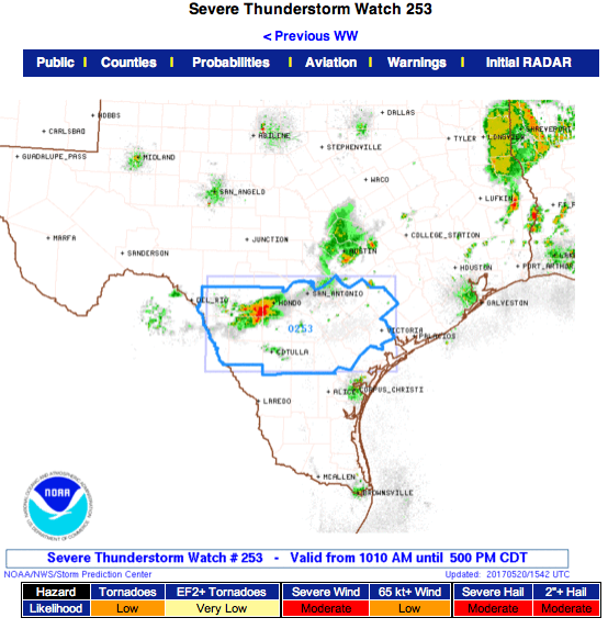 Strong to severe thunderstorms could move into portions of SE TX later this afternoon and evening from storms over S Central and STX. A Severe Thunderstorm Watch was issued a little earlier for much of that region.