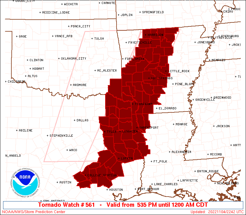 Tornado Watch from Montgomery County northward all the way to the Arkansas/Missouri border. One of the largest watches I’ve seen in awhile.