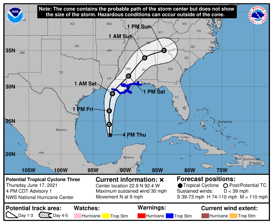 As a rank amateur but another enthusiast (I might have been a meteorologist if my alma mater had the major) I'm within 50 mi of the NHC prediction.djmike wrote: ↑Thu Jun 17, 2021 6:50 pm As long as I have followed Tropical weather, 30+ years. I think this is the first time Ive ever seen NHC issue a cone to one place when the models are still pointing to another. Wow. I know I know. It’s because of the center reformation and models are STILL confused. And yes its going to La. I know why. BUT...I just have never seen models go one place and an official cone going different. Has this happened before?