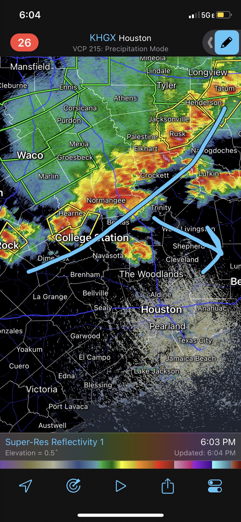 The line is weakening it looks like but the northern burbs of Houston should still get something.