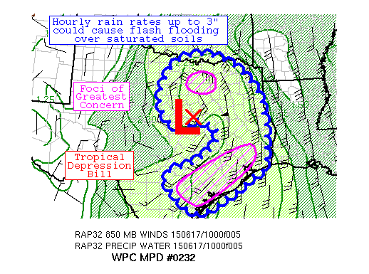 FEEDER BANDS FORMING SOUTH OF TROPICAL DEPRESSION BILL MOVING