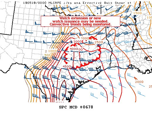 mode across the Texas Hill country into northeast Texas may trend