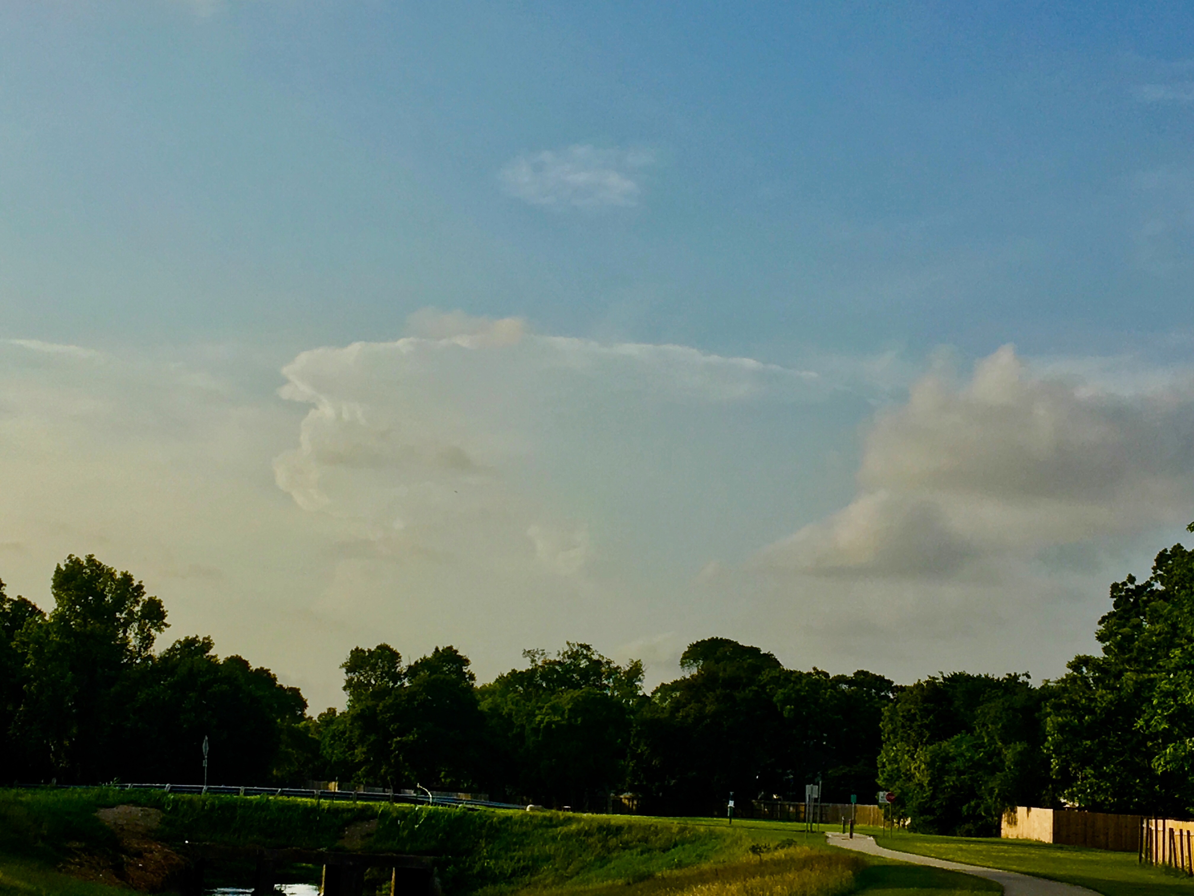 I watching this strong thunderstorm grow while walking our dog Bella-rue on the trails here in W League City.