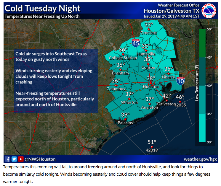 Just dropped to 35F in NW Harris County. That wind is COLD!!