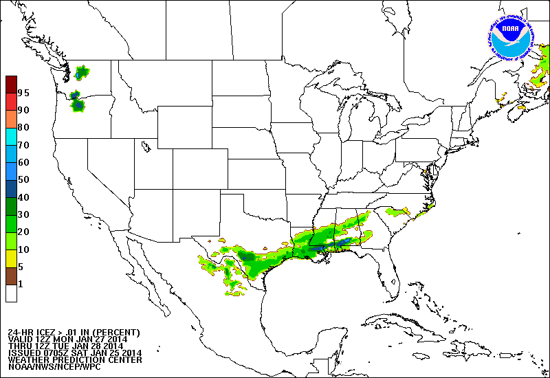 The WPC using a blend of the multi model consensus suggests the Day 4-5 range has light precip along Coastal Texas into Louisiana. The WPC Winter Weather Desk Outlook also suggest some chance of freezing rain/sleet mainly along and S of the I-10 Corridor Tuesday night into early Wednesday. We need to give the guidance another day or two before buying in on any one solution. That said the Arctic front arriving Monday and the a strong upper air disturbance riding E from the Baja Region across Mexico does raise an eyebrow and will be worth monitoring the next 24 to 48 hours. We will see.